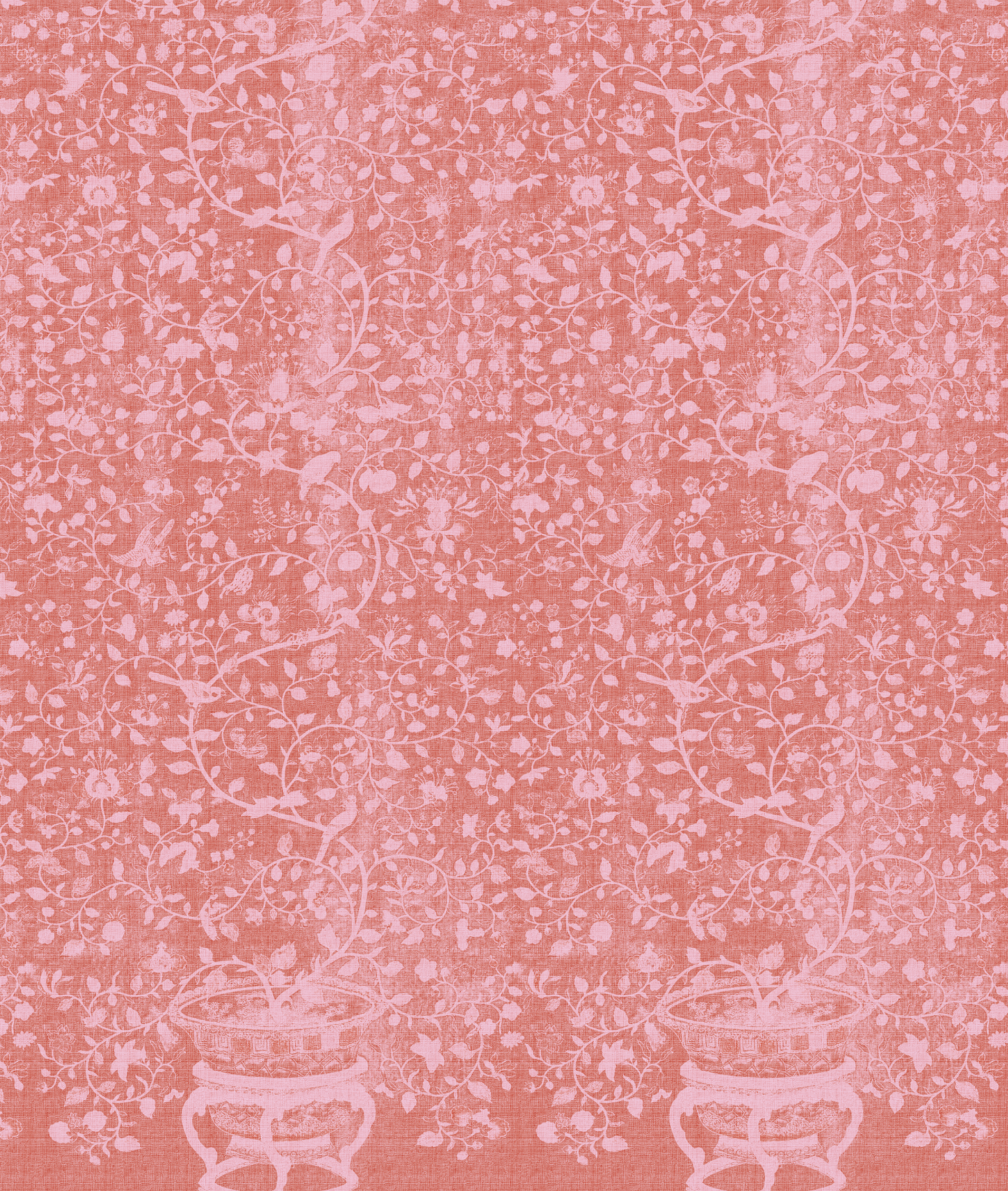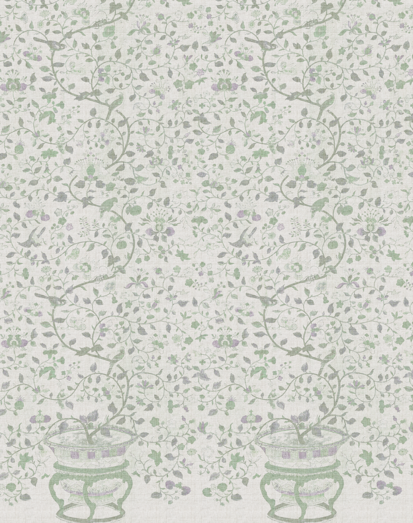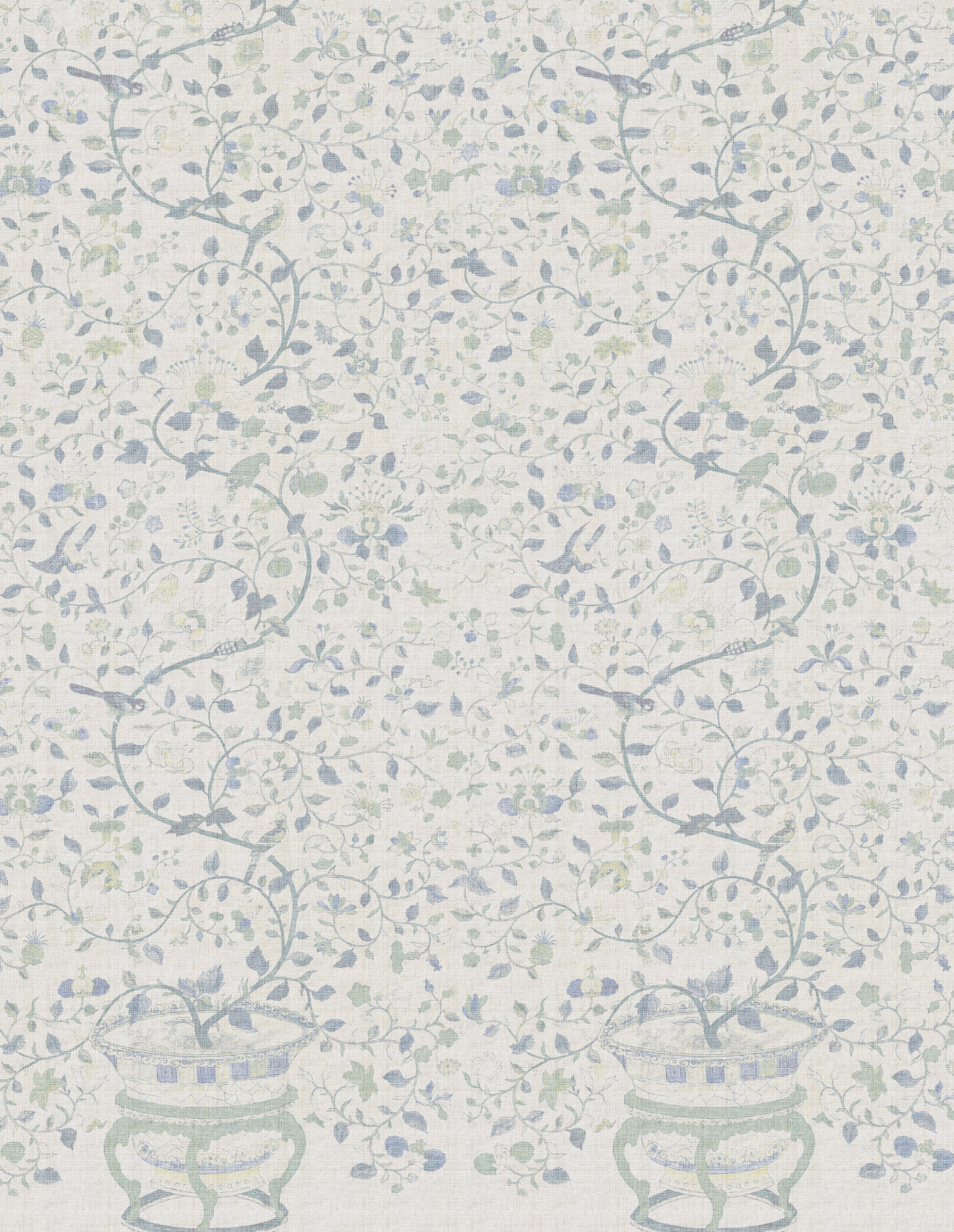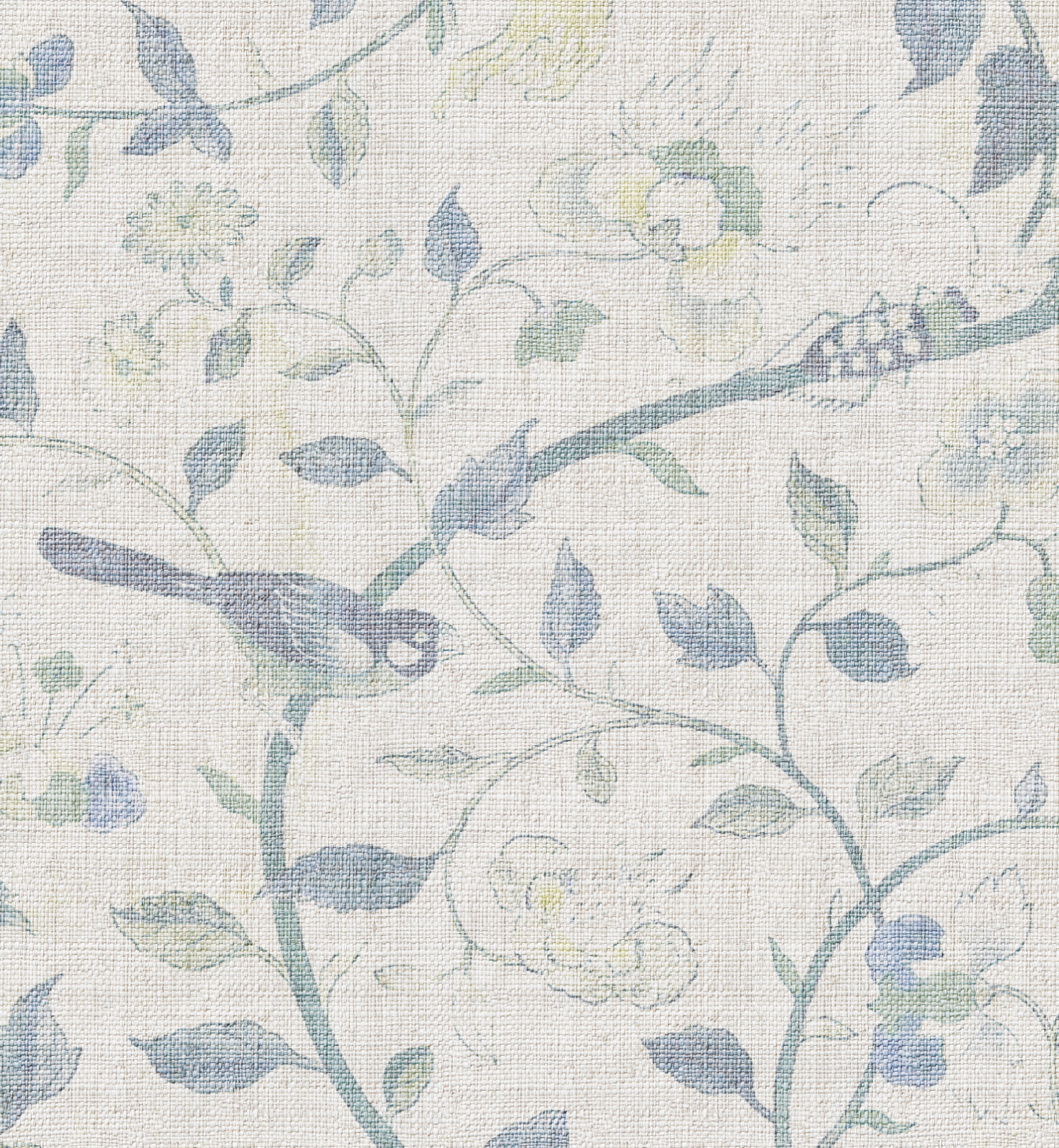 Papel mural de inspiración botánica clásica, con delicados motivos florales, aves y ramas entrelazadas sobre un fondo con textura tipo raffia. Su paleta suave y empolvada, disponible en tonos azules, verdes y rosados, aporta luz, elegancia. Ideal para livings, dormitorios y comedores donde se busca un ambiente acogedor, natural y sofisticado.