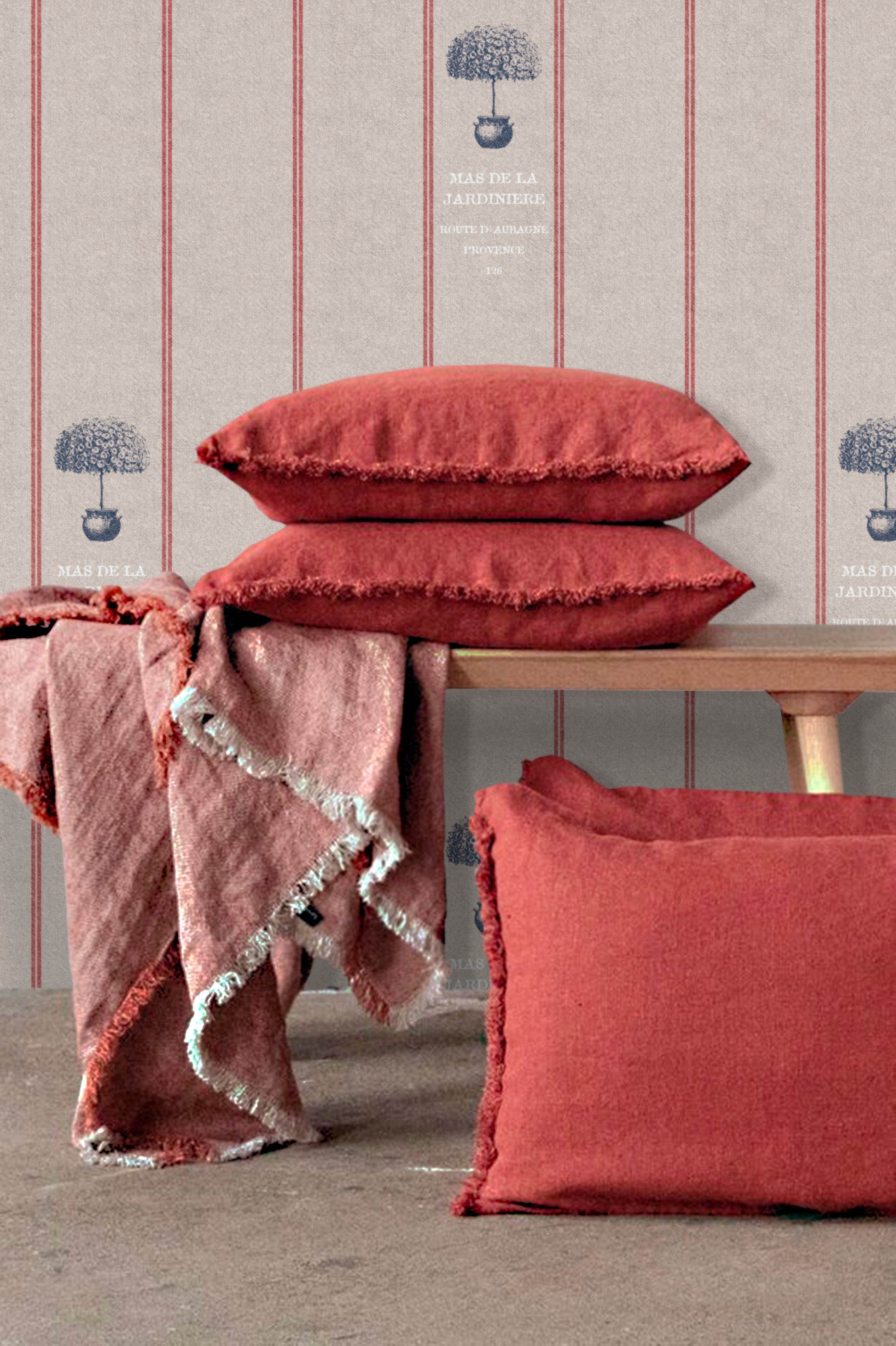 Descubre la esencia del sur de Francia con nuestro papel mural Provence, inspirado en los textiles tradicionales de la campiña francesa. Su diseño combina líneas verticales en tonos rojizos y un delicado motivo botánico estilo vintage, evocando el encanto rústico y la sofisticación natural de una casa de campo.