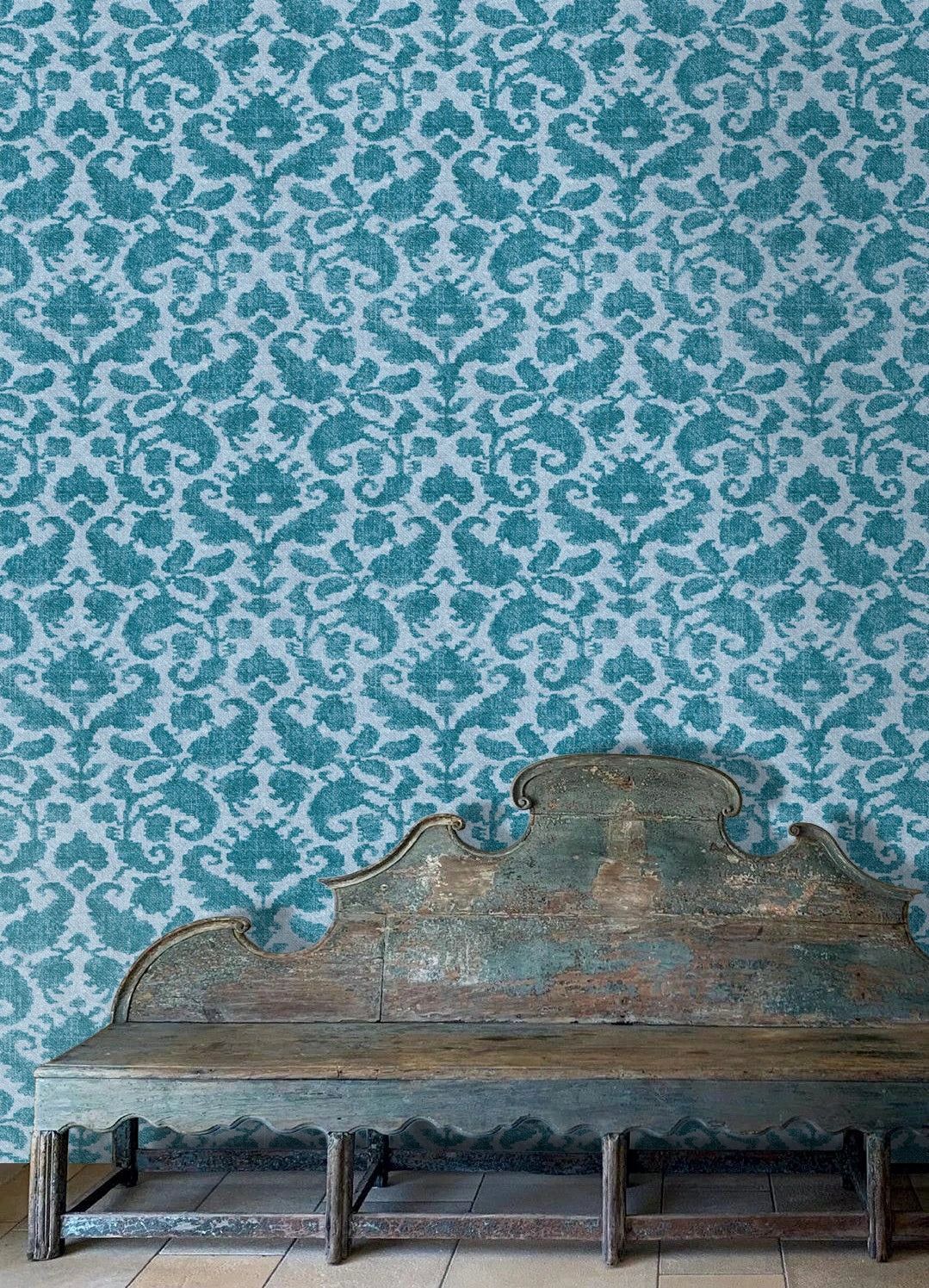 El mural Toulouse reinterpreta el clásico patrón Damasco, pero con una textura que simula un tejido.